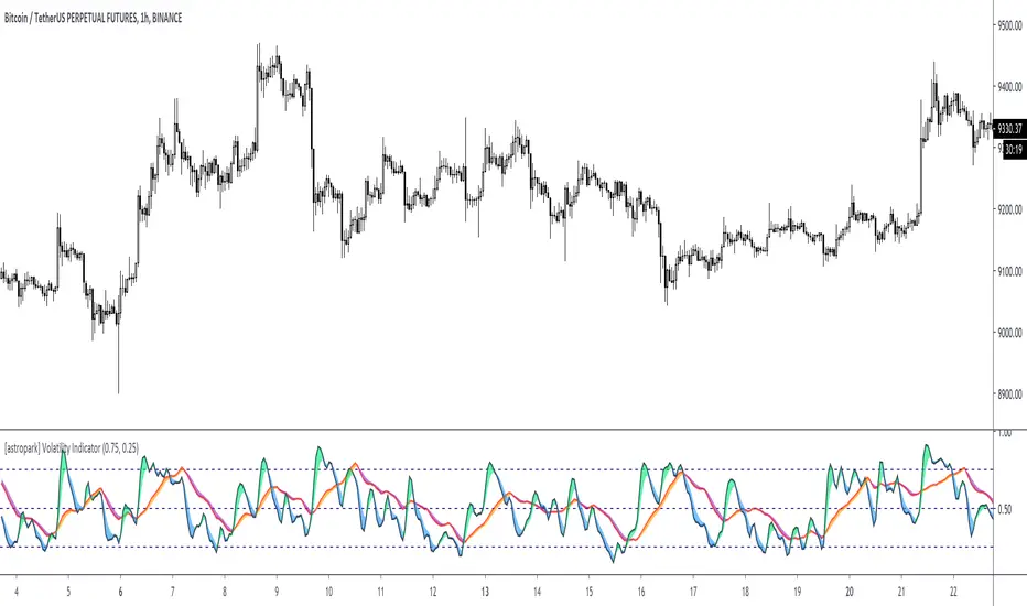 This indicator measures the volatility of the market you see in the timeframe you see, in a scale between 0 and 1.