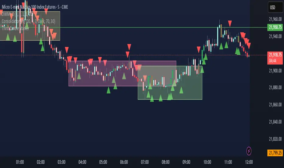 This script highlights potential trend continuation setups by marking the third candle after two consecutive candles of the same direction.