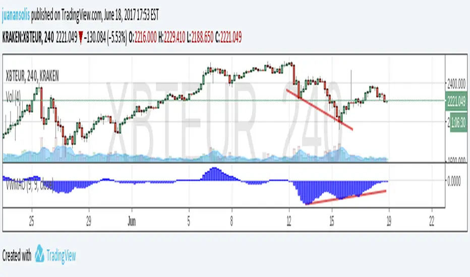 The Oscillator ranges around 0. Uses the difference between VWMA and an SMA smoothed by an EMA . The most useful are price divergences.