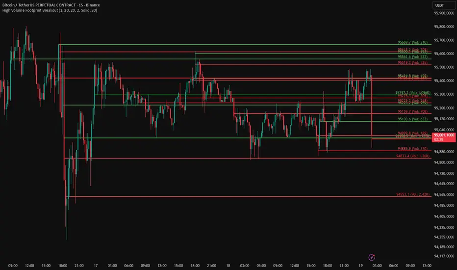 This indicator is provided for educational and informational purposes only and DOES NOT constitute financial, investment, or trading advice. The "High Volume Footprint Breakout" tool is based on historical data analysis and algorithmic interpretation of market volume; it does not predict future market movements with certainty.