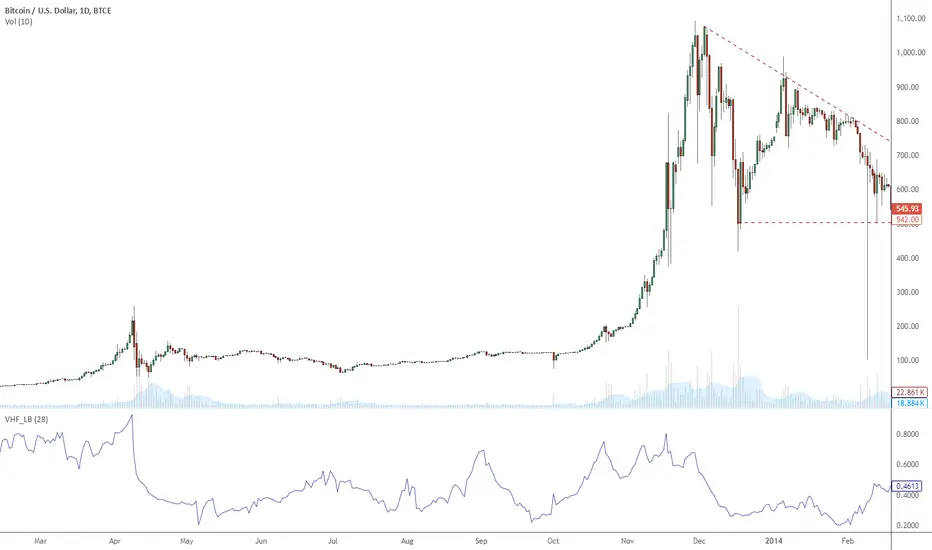 VHF determines whether prices are in trending or congestion phase. Rising edge signifies a trend, falling edge signifies prices may be entering congestion phase.