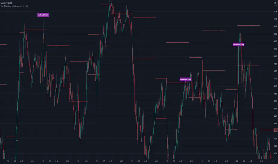 ⤞ The strategy is built by first determining a possible candidate price levels having high chance of pullbacks. This is determined by finding out multiple rejection point and creating a zone around this price. A rejection is considered to be valid only if it comes to this zone after going down by a minimum pullback percentage. Once the price has gone down by this minimum pullback percentage multiple times and reaches the zone again chances of pullback goes high and an indication on chart for the same is given.