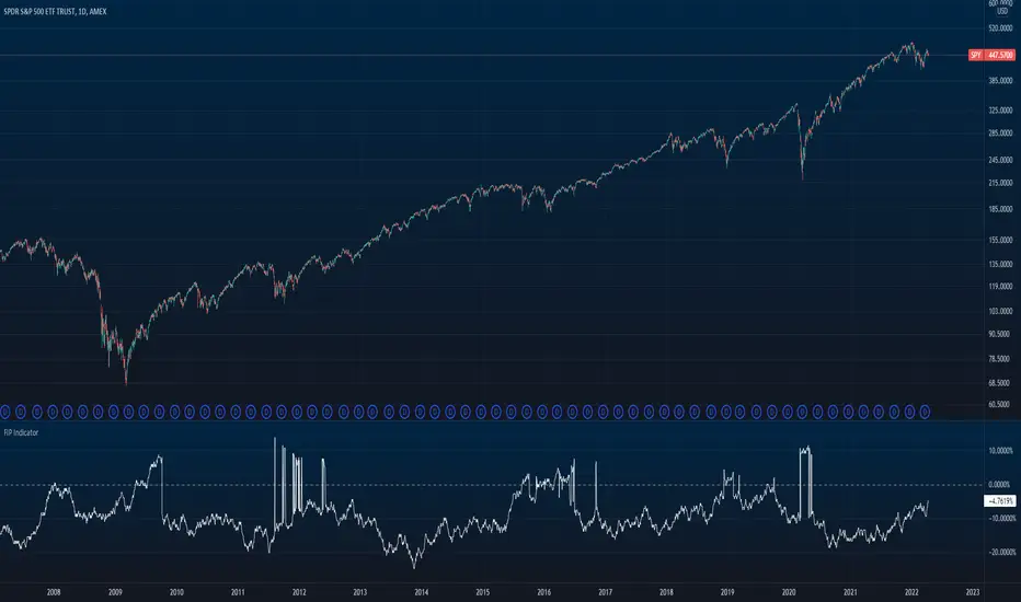 This indicator is the percent of negative days minus the percent of positive days in a year multiplied by the sign of the overall return of the lookback (365 days for crypto and 252 days for stocks).