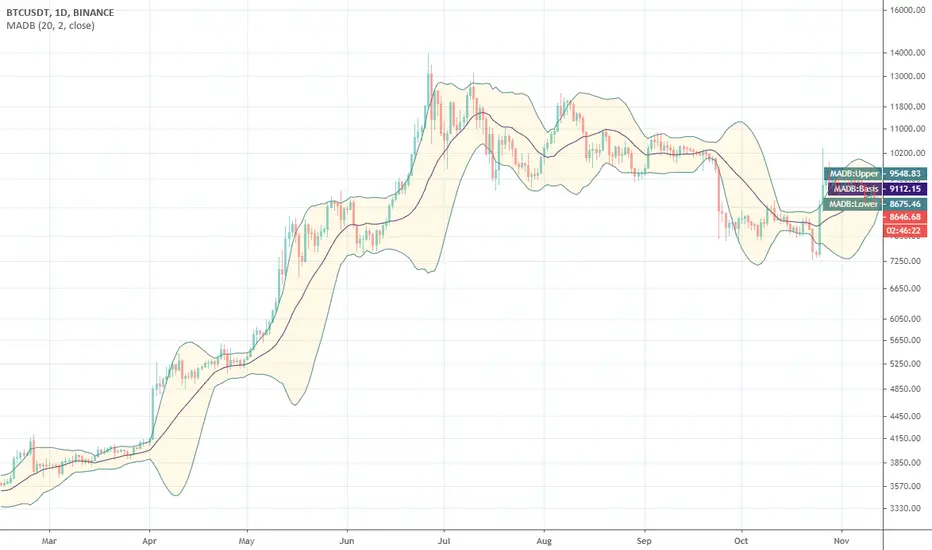MAD is always less than or equal to Standard Deviation and the resulting bands are more tighter for the same parameters if we compare it to Bollinger Bands.