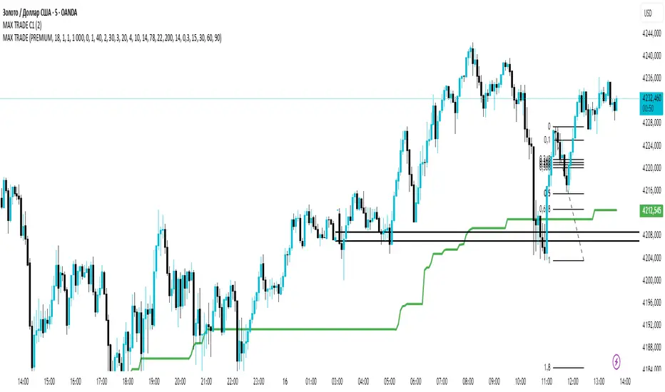 It automatically detects market structure breaks, trendline breaches, and Fibonacci zones to generate high-probability BUY and SELL signals.