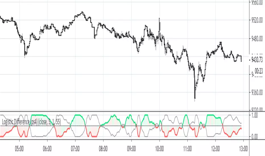 This is an PS4 update to the Logistic Difference Indicator. It uses logistic function (sigmoid), which stabilizes the variance of data. The logistic function resembles the inverse Fisher transform. This version has a repaint/non-repaint switch and a scaling feature.