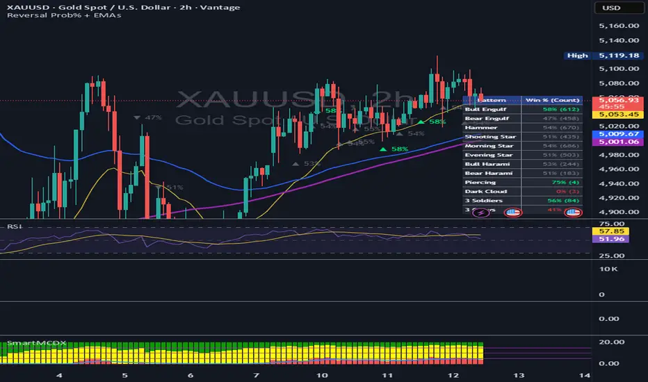 - Real-Time Win Rates: See the probability of a pattern working directly on the label (e.g., "Bull Engulfing: 75%").
