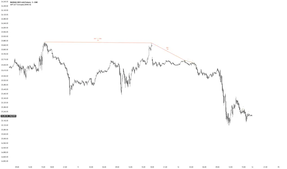 Smart Money Technique (SMT) Divergence is a price action analysis method derived from Inner Circle Trader (ICT) methodology. This indicator automatically detects SMT divergences by comparing price movements across correlated financial instruments, identifying moments when assets that typically move together begin to diverge - a phenomenon often associated with potential price reversals.