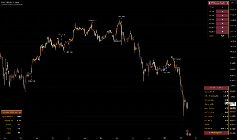 ⏳ 𝓑𝓣𝓒 𝓣𝓻𝓮𝓷𝓭 𝓒𝓪𝓽𝓬𝓱𝓮𝓻 ⏳ offers traders a systematic way to capture Bitcoin’s major trends while filtering out lower-probability noise. By combining multiple trend models into a unified decision engine, it provides structured confirmation rather than emotional reaction.