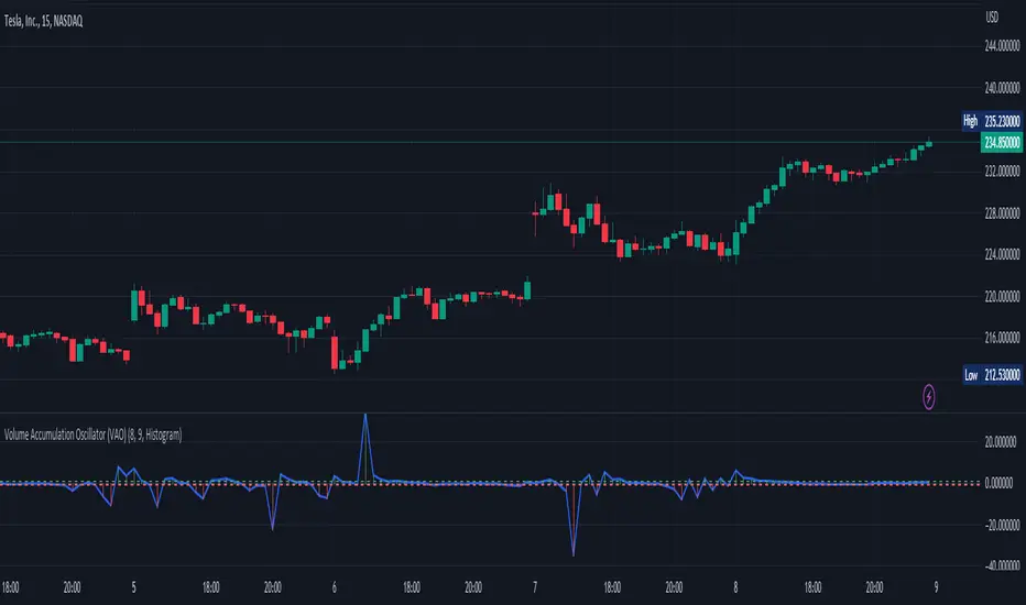 The Volume Accumulation Oscillator (VAO) is a powerful momentum-based indicator designed to assess the strength of volume accumulation in a given asset. It helps traders identify periods of intense buying or selling pressure and potential trend reversals.