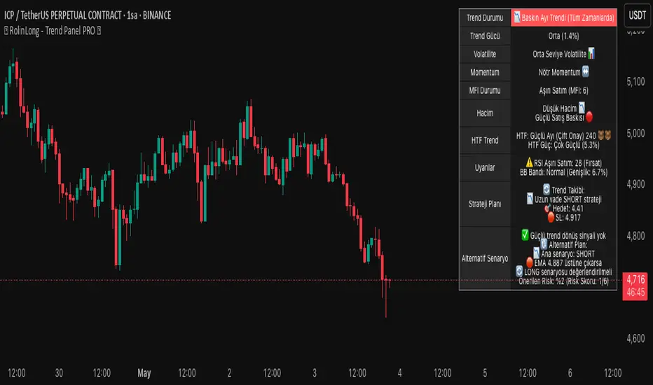 Apply the indicator “⚡ RolinLong – Trend Panel PRO ⚡” on your chart.