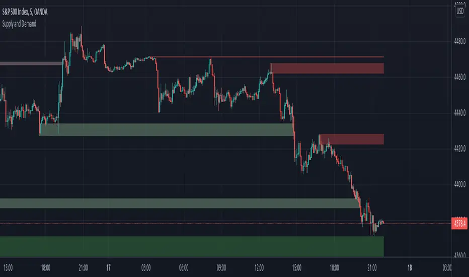 Our Indicator visualises active Supply and Demand Zones. Supply zones are red and Demand Zones are green. Furthermore, our indicator shows a brief history of Expired Supply and Demand Zones. These Zones have the same color as the active Supply and Demand Zones, just with a higher color transparency so that you can distinguish between active and Expired Zones.
