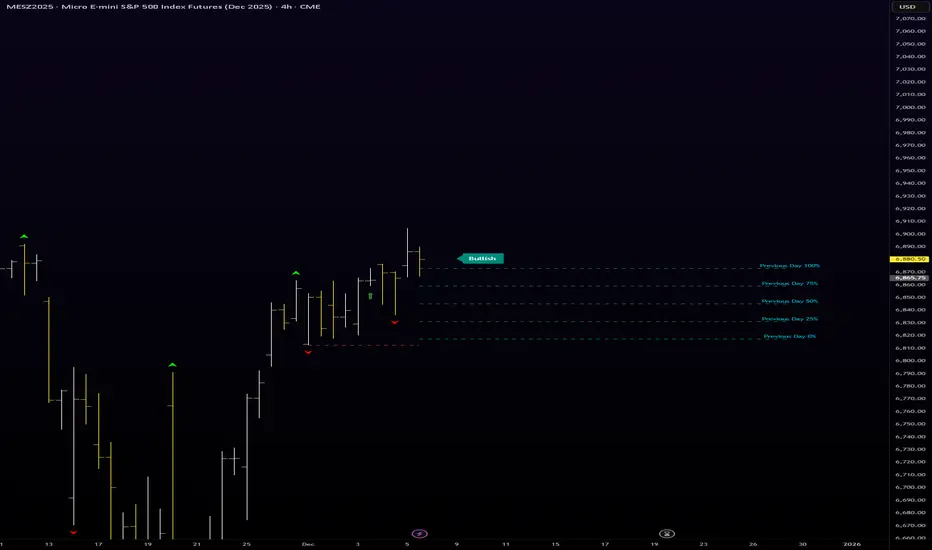 This indicator helps you identify the position of price in comparison with distance to key reference levels on multiple timeframes. Statistically, when the price is opening in the lower quartile of a timeframe, there is a higher chance for that previous low to be taken, depending on the market structure already formed