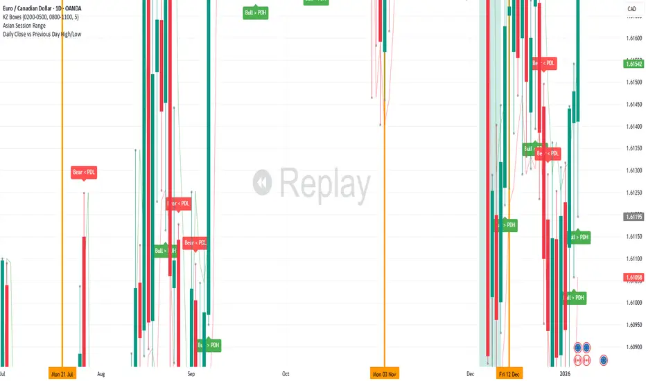 indicator that marks when the current daily candle (bullish or bearish) closes beyond the previous day’s High or Low.