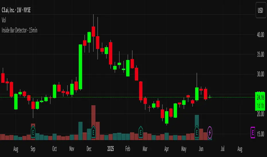 * When an Inside Bar is detected, the script **plots a yellow label ("1") above the bar**.