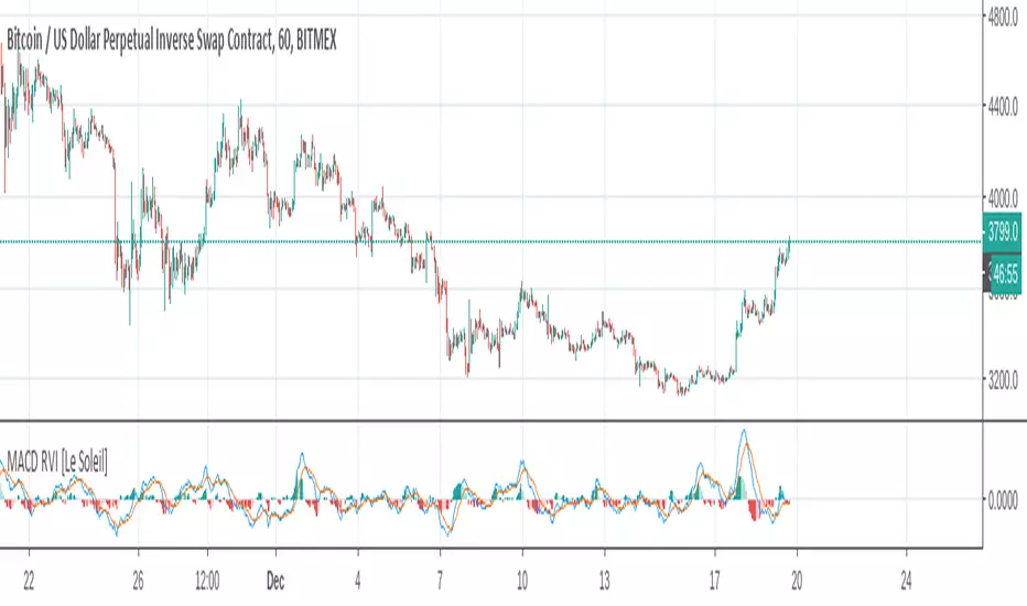 Recalculation MACD with RVI. This application provides better results than combination of moving averages, MACD, RVI.
