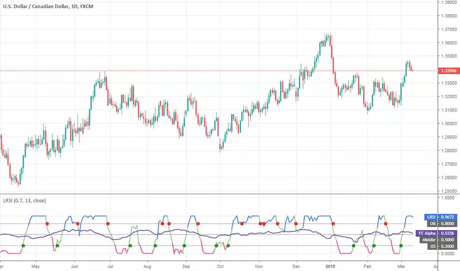 Laguerre RSI (Self Adjusting Alpha with Fractals Energy) indicator script. I adopted idea from prorealcode.com/prorealtime-indicators/rsi-laguerre-adjusting-gamma-fractals-energy/ and