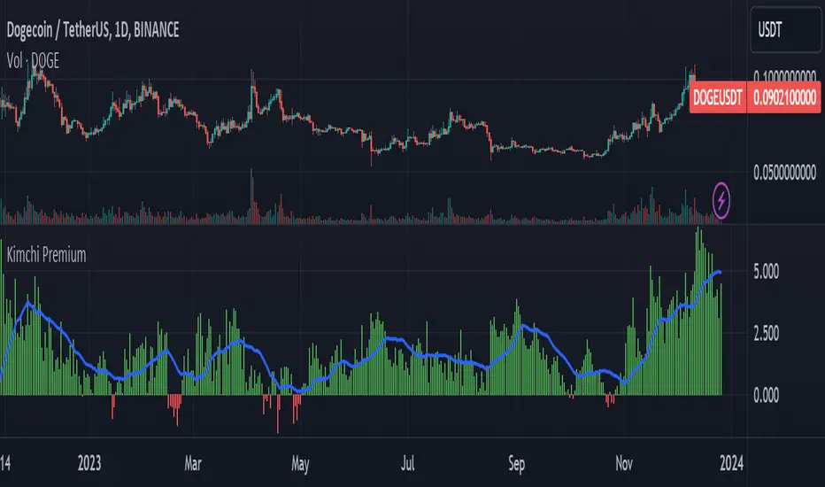 The extend of this premium can be used to gauge Korean sentiment towards certain tickers. Most of the insane alt coin rallies that are started by Korean degens are missed by foreign traders entirely. This script seeks to fix that.