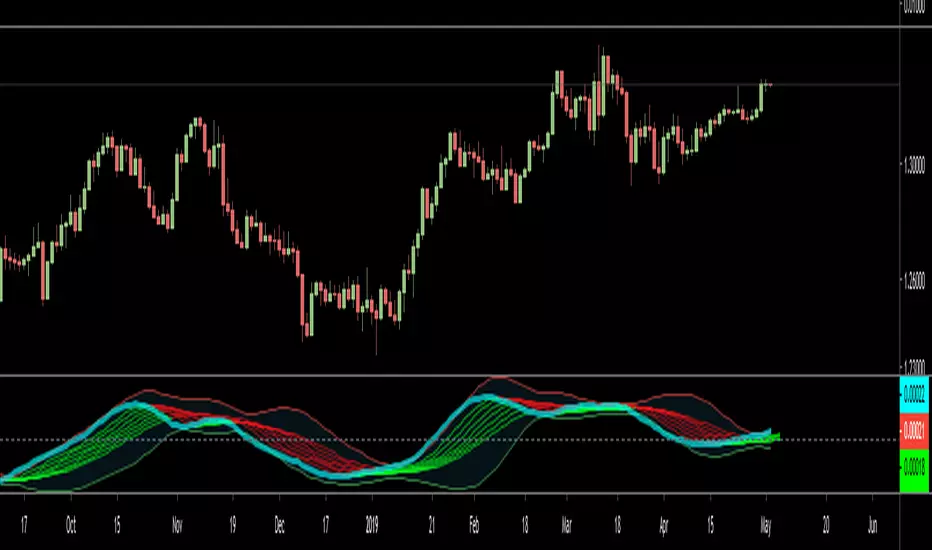 When there is momentum, the Bands will widen and the Ribbon will fan out.