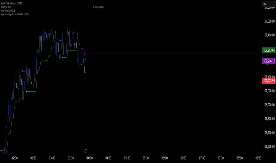 when super trend changes Trend , its important to wait for crossing the Price line of opposite Band so i have written this script . this will help you Traders for sure
