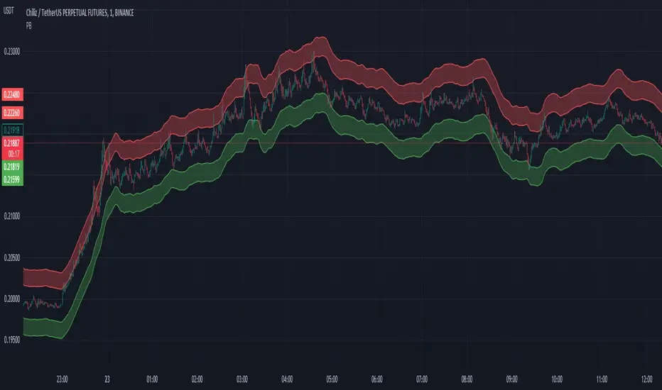 Simple moving average based percentage band. Think it as a reaction zone. Not useful when market is trending.