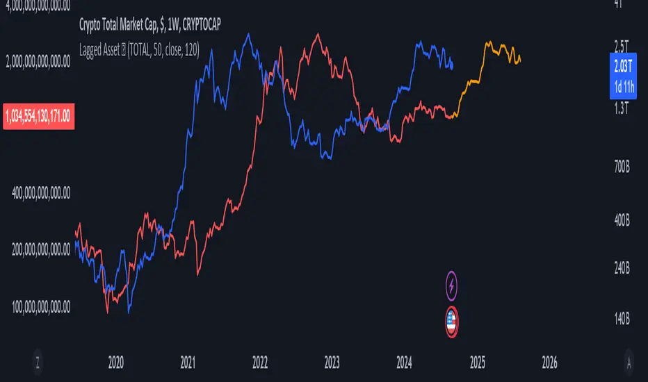 This indicator allows you to overlay a secondary asset on your main chart with a customizable lag. It's perfect for traders who want to analyze the relationship between the current asset and another asset with a time-shifted perspective. The secondary asset’s price data can be lagged by any number of bars, helping you spot leading or lagging behaviors between assets.