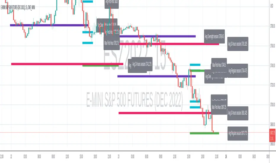The script calculates the average range for the last x days of the session defined and plots a line at the expected range extremes based on that average (for example: RangeExtremeHigh would be currentSessionLow+average Range of the last x days.