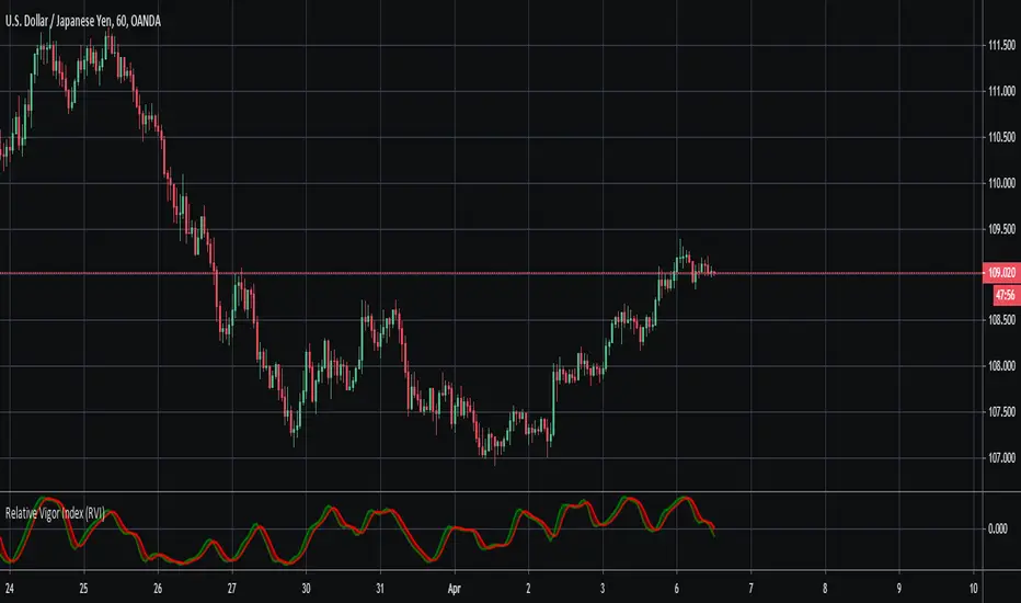 Colored Relative Vigor Index (RVI). Now with crossover alerts