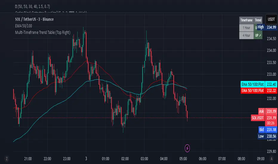 Multi-Timeframe Trend Table - EMA Based Trend Analysis