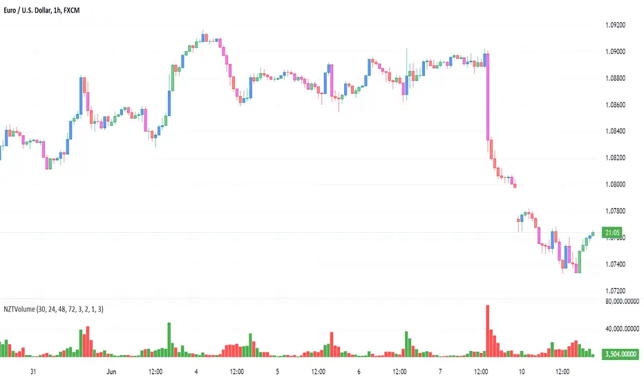 NZTVolume — это продвинутый индикатор для TradingView, вдохновленный ментором Алмазом. Он предназначен для облегчения аналитической работы трейдеров, которые активно используют данные о реальных объёмах торгов в своем анализе. Индикатор также имеет множество функций, которые упрощают работу и предоставляют большие возможности для анализа, включая ключевую функцию - выявление эффективных и неэффективных движений, которые описаны ниже.