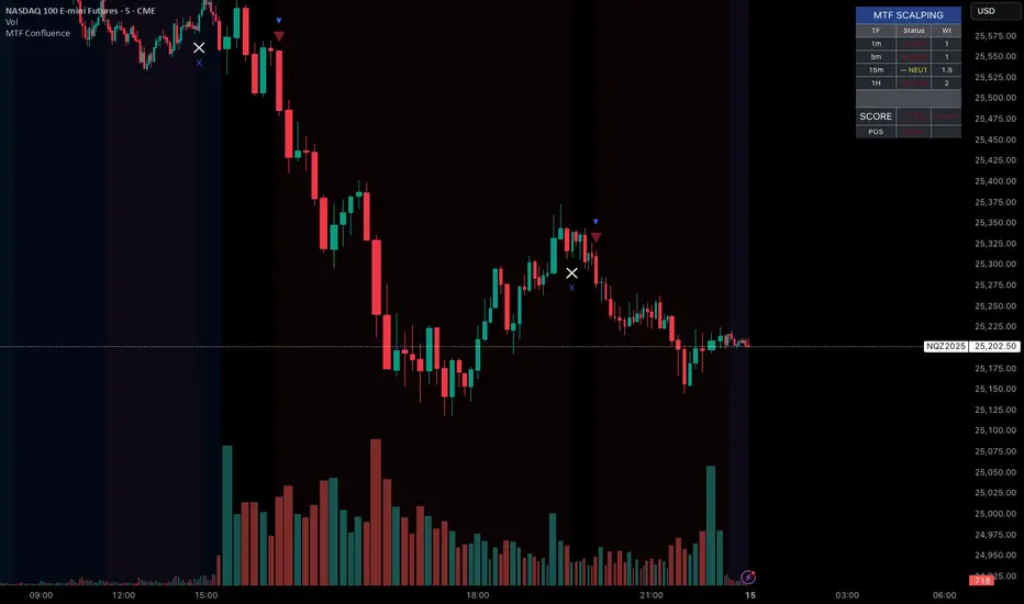 The MTF Momentum Confluence Strategy identifies high-probability trade setups by analyzing momentum alignment across multiple timeframes. When momentum agrees across 4 different timeframes, the probability of a successful trade increases significantly.