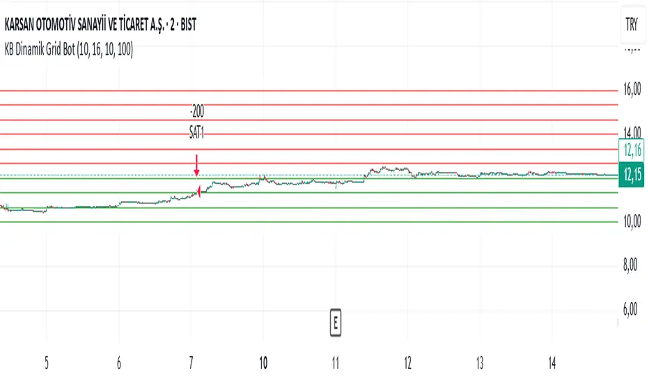 Grid trading is a strategy that aims to profit from price fluctuations by automatically placing buy and sell orders at certain price levels. This special script, named "KB Dynamic Grid Bot V19 TR + TDO + Stop + Share Settings", automatically performs buy-sell transactions and offers various analysis tools according to the parameters determined by the users.Grid Trading Strategy: