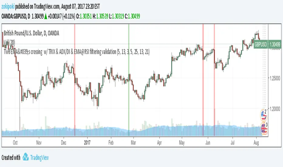 Two EMA's crossing w/ TRIX & ADX/DI & EMA@RSI filtering