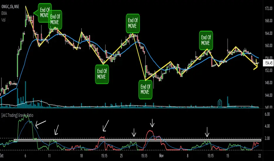 1) Whenever Gravity Ratio value is near or more than 2 (general limit), it is assumed that move is extended and traders should look for booking out some or full profits (as per their initial trade plan)