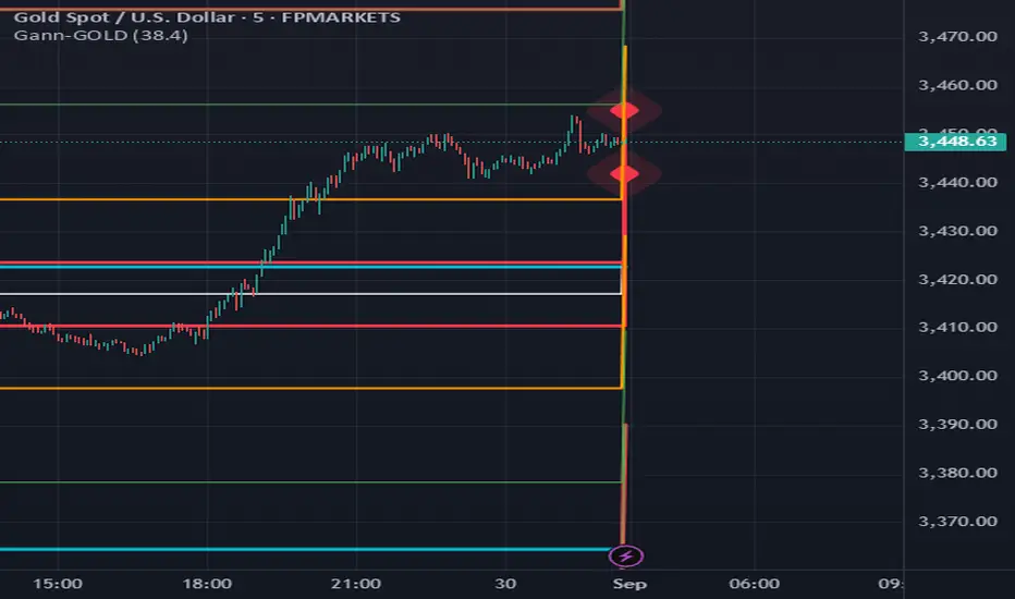 The Gann levels for XAUUSD indicator is designed to plot dynamic Gann levels based on either the previous day’s Close price (for large-cap stocks) or the current day’s Open price (for small-cap stocks). These levels help traders identify key price zones, reversals, and potential trading opportunities.