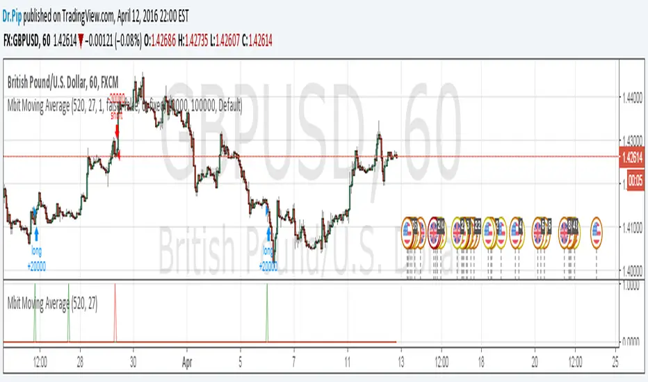 This is a modification of [AUTOVIEW] MOVINGAVG CROSS with different inputs of bar lengths that work with a great average percentage with not much drawdown. I ran the strategy tester with GBPUSD on 1 hour time frame.