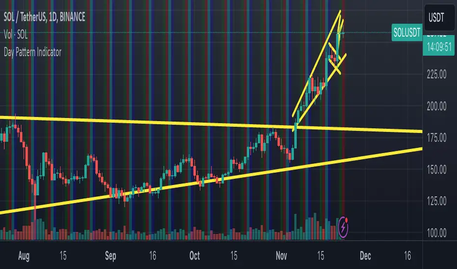 The Day Pattern Indicator is designed to help traders analyze daily trends and patterns in their selected markets. This tool highlights specific days of the week on the chart with unique, semi-transparent colored bars. Each day is customizable, allowing users to toggle the visibility of Monday through Sunday to focus on days most relevant to their trading strategy. Ideal for identifying potential patterns in cryptocurrency, forex, or stock markets, the indicator is perfect for traders seeking insights into weekday or weekend market behavior. Simple, effective, and visually intuitive!