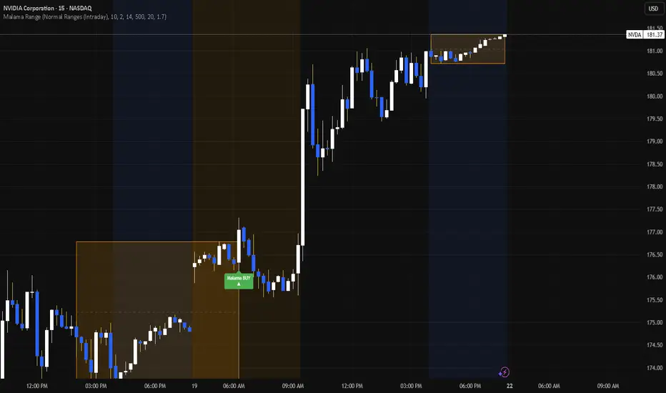 Malama's Range Breakout is a dynamic indicator designed to automatically detect periods of price consolidation (tight ranges) and generate actionable signals for breakouts or wick-based reversals.