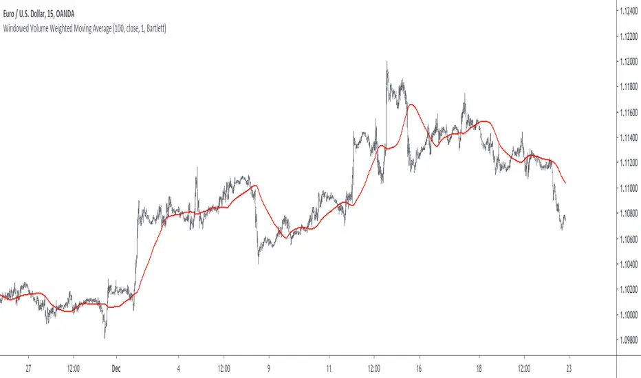 Today we will use windowing with the volume weighted moving average, a moving average that weight the price with volume in order to be more reactive when volume is high, that is the moving average is more reactive when the market is more active. The use of windowing in the vwma allow to enhance its performance in the frequency domain which result in a smoother output.