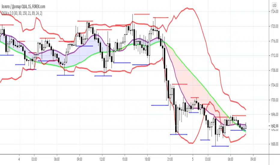 Consists of dynamic support (blue lines) and resistance (red lines) levels. Accordingly, near these lines positions should be opened: the long ones from support lines and short ones from resistance lines.
