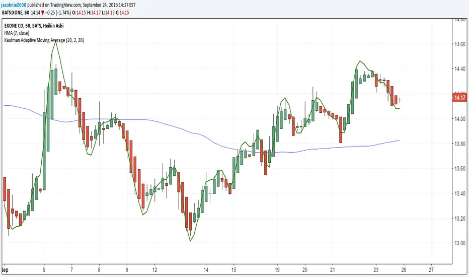The KAMA will not change when the interval changes from day to something like 5 minutes or 30 minutes. Allows for more precise trading with the same indicator on a different interval.