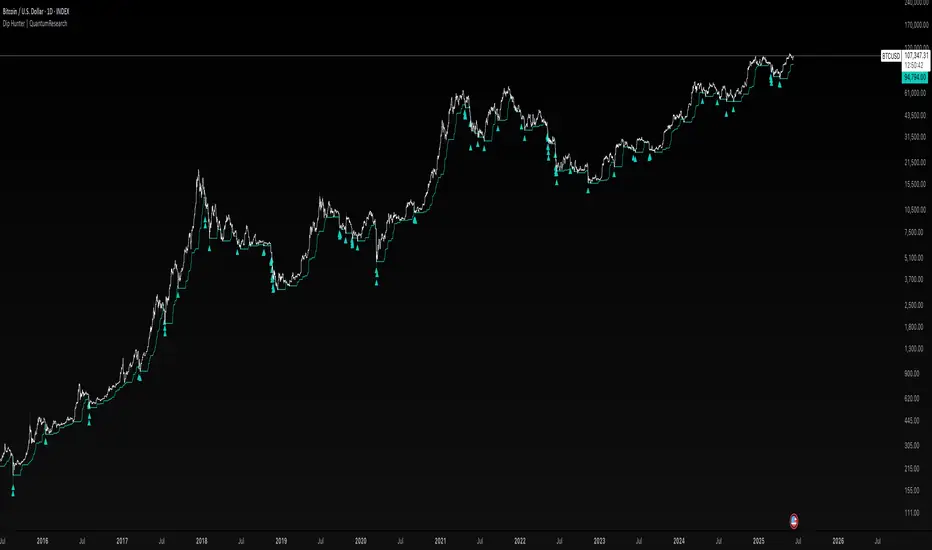 Dip Hunter is a minimalist yet sharp signal engine designed to identify statistically rare dips within longer-term uptrends. Rather than relying on subjective oversold conditions, this tool leverages percentile analysis and volatility-adjusted filters to highlight moments of strong downside deviation.