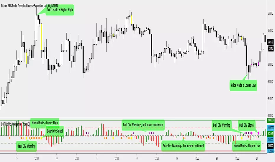 You may use this indicator for momentum, but I do not recommend it. If you would like to use this indicator to find momentum signals please use the original version of the DBT MoMo. This indicator was made specifically to showcase divergence signals.