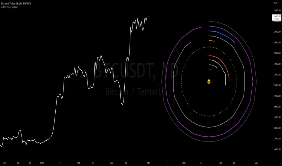 In a bird's eye view model, some of the details of the solar system are necessarily left out or simplified. For example, the distances between the planets are not to scale, and the orbits are shown as perfect circles rather than the elliptical shapes they actually are. Nonetheless, this model can provide a useful visual real-time representation of the relative heliocentric longitudinal positions (aspects) of the planets in our solar system.