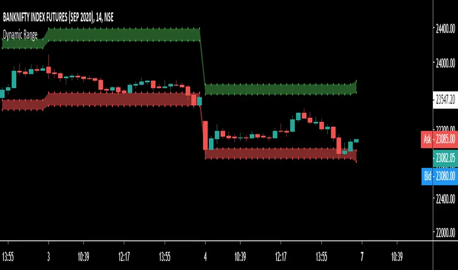 1. 2 ranges derived from indicator are supposed to be a consolidation zone and any close above or below is supposed to give a good move.