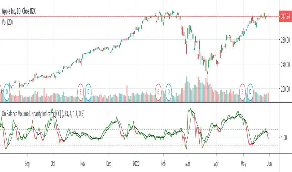 The On Balance Volume Disparity Indicator was created by Phillip C. Holt (Stocks & Commodities V. 14:6 (265-269)). This converts the classic OBV indicator into Bollinger Bands and calculates the percentage of where the value lies within the Bollinger Bands. Buy when the obvdi rises above its signal line and sell when it falls below the signal line.
