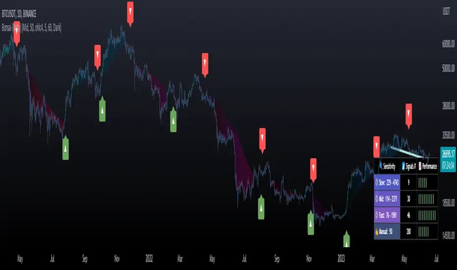 Bonsai is a cutting-edge trading indicator engineered to assist you in pinpointing market trends and delivering potent buy and sell signals. With its adaptive sensitivity settings and distinctive color-coded visualizations, Bonsai serves as an invaluable tool for traders seeking to improve their decision-making abilities. 📊