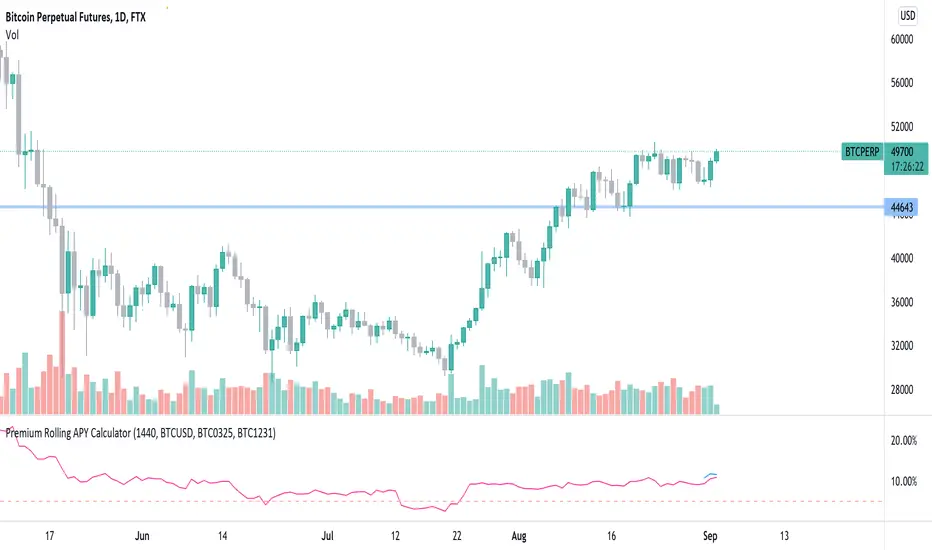 By default you can see the rolling APY for FTX BTC0924, and APY for BTC1231. You can also change the symbol from chart settings to whatever you need and still calculate in the same way.