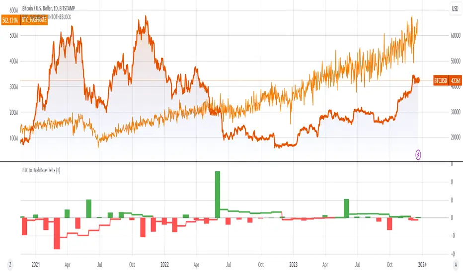 Whenever the ratio between the price and hashrate of Bitcoin is positive, it indicates that the price is increasing at a faster rate than the hashrate. This, in turn, means that Bitcoin is becoming more expensive compared to any variations occurring in the hashrate. Using the Price/Hashrate Delta ratio, we can determine whether Bitcoin is overvalued or undervalued in relation to the hashrate. This can be a helpful indicator for assessing the current market conditions.