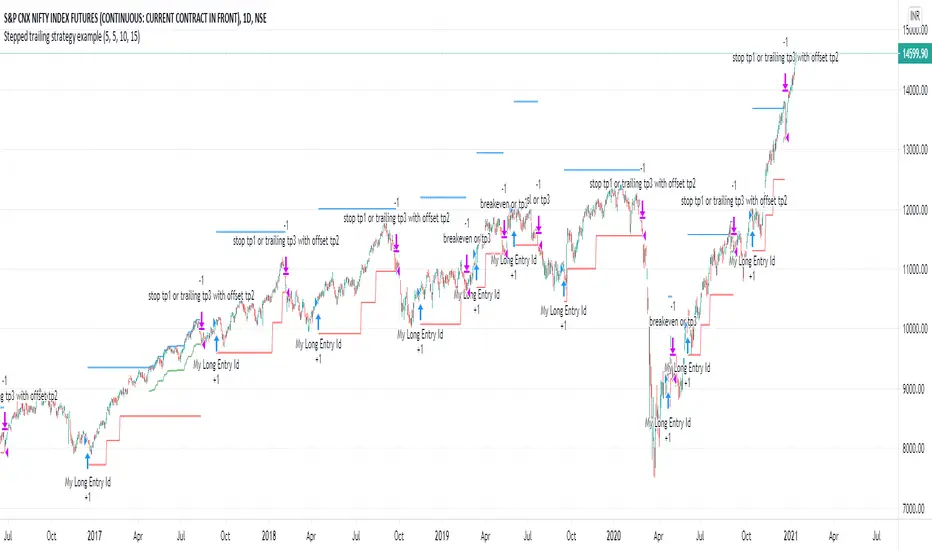 New input `activateTrailingOnThirdStep` added.With `activateTrailingOnThirdStep = true` when tp2 will be reached, the strategy places trailing stop with amount at tp3 level and offset at tp2 level.